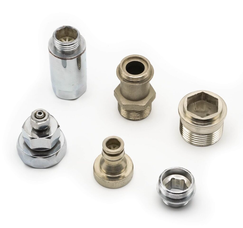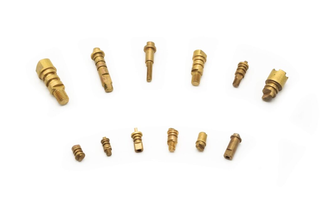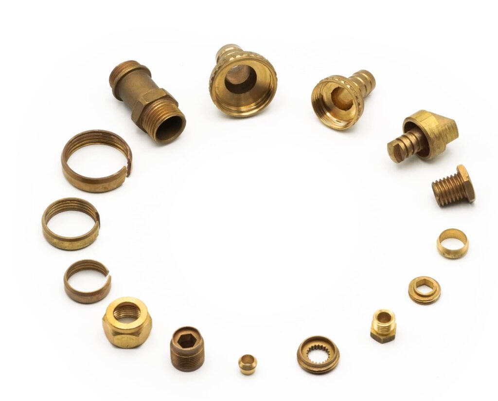 قطعات برنجی شامل گوی (ساچمه)، محور یا ساقه، مهره های تنظیم یا رگلاژ، درپوش های شیر پیسوار و لباسشویی، واسطه های برنجی، مهره ها و اتصالات برنجی.