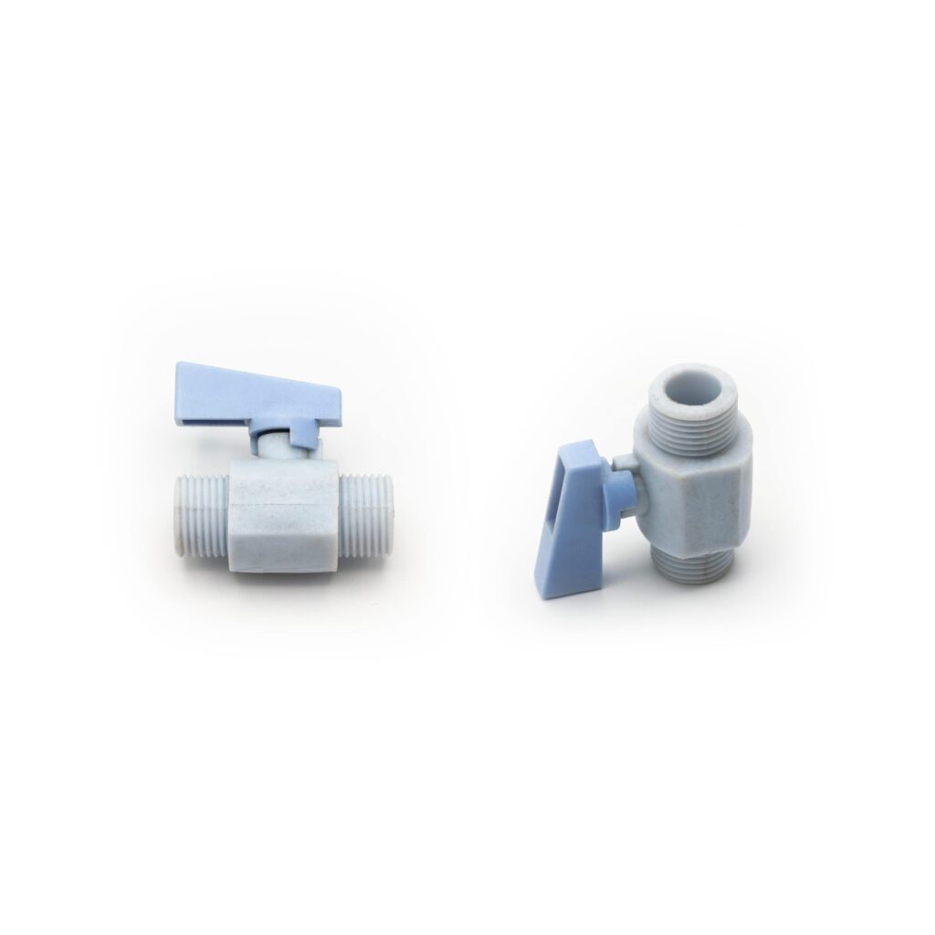 اين شير که با تمام قابليتهاي مشروحه در مورد شير يکپارچه پليمري تکضرب توليد شده است بدليل تعبيه دنده 1/2 اين قابليت را داردکه ميتواند به اتصالات فلزي بسته شود . هدف اصلي از توليد اين شير مصرف آن در آب ورودي آبگرمکن هاي ديواري بوده است اما به واسطه مزاياي عالي آن قابل نصب براي آب ورودي کولر بدون هيچ نگراني از نشتي در سرماي زمستان و گرماي تابستان و بدليل مقاومت خوب آن در مقابل خوردگي محيط و اتمسفرهاي محيطي کارکرد بسيار خوبي در باغباني و کشاورزي براي آبياري قطره اي و غيره دارد . مقاومت تست شده اين شير در فشار 20 بار کارکرد اين شير را در صنعت پنوماتيک آسان نموده است.